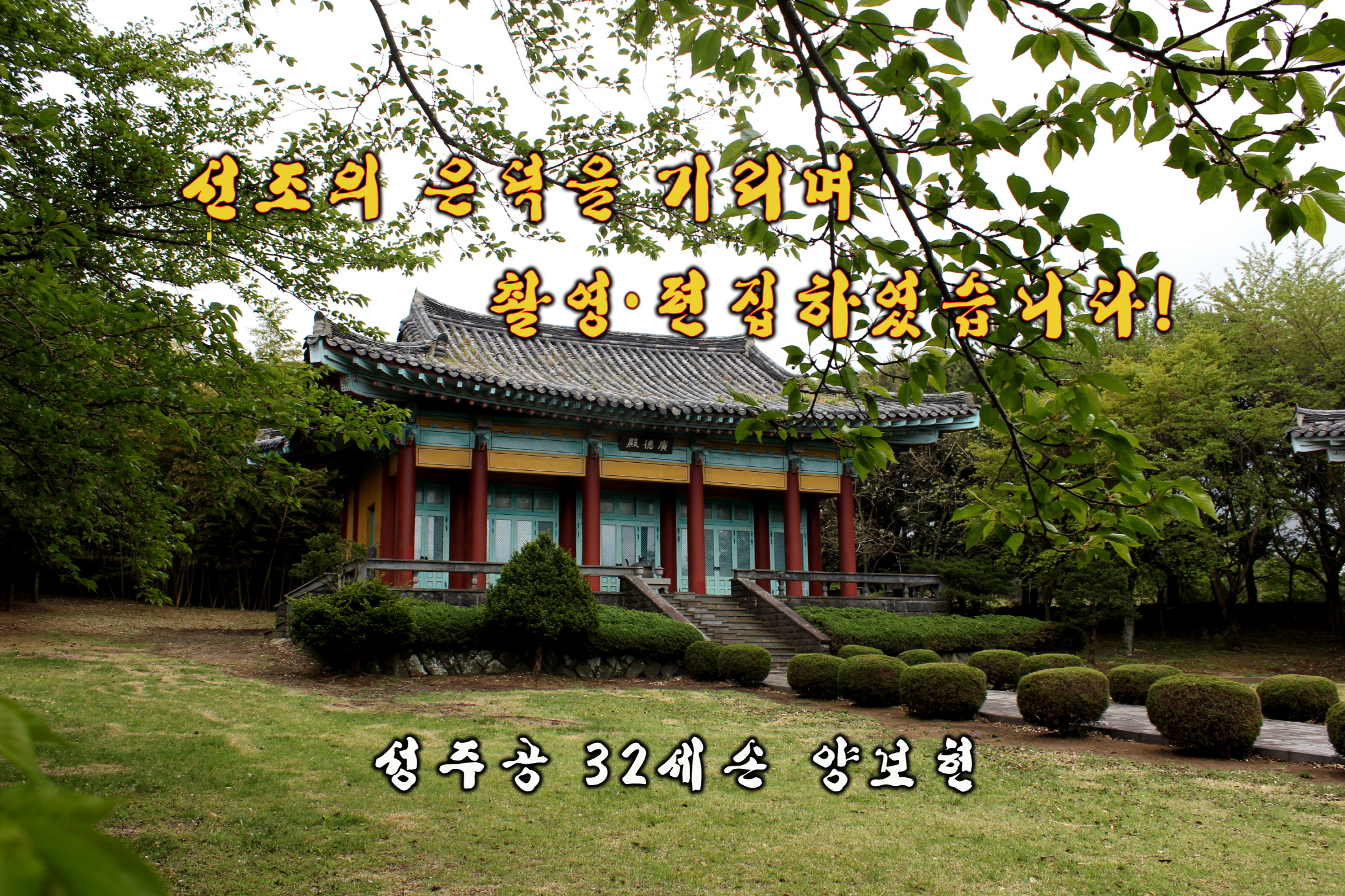 종친 여러분 가정에 건강과 행운이 함께 하시길 기원하면서 사진을 감상하시길 바랍니다. 그리고 내년도 탐라양씨건승원대제에는 가족이나 종친끼리 많이 참석하여 주시길 부탁드립니다.